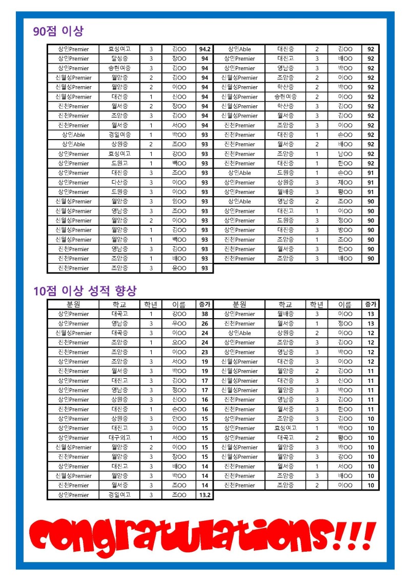 22년 1학기 기말고사 성적우수자
